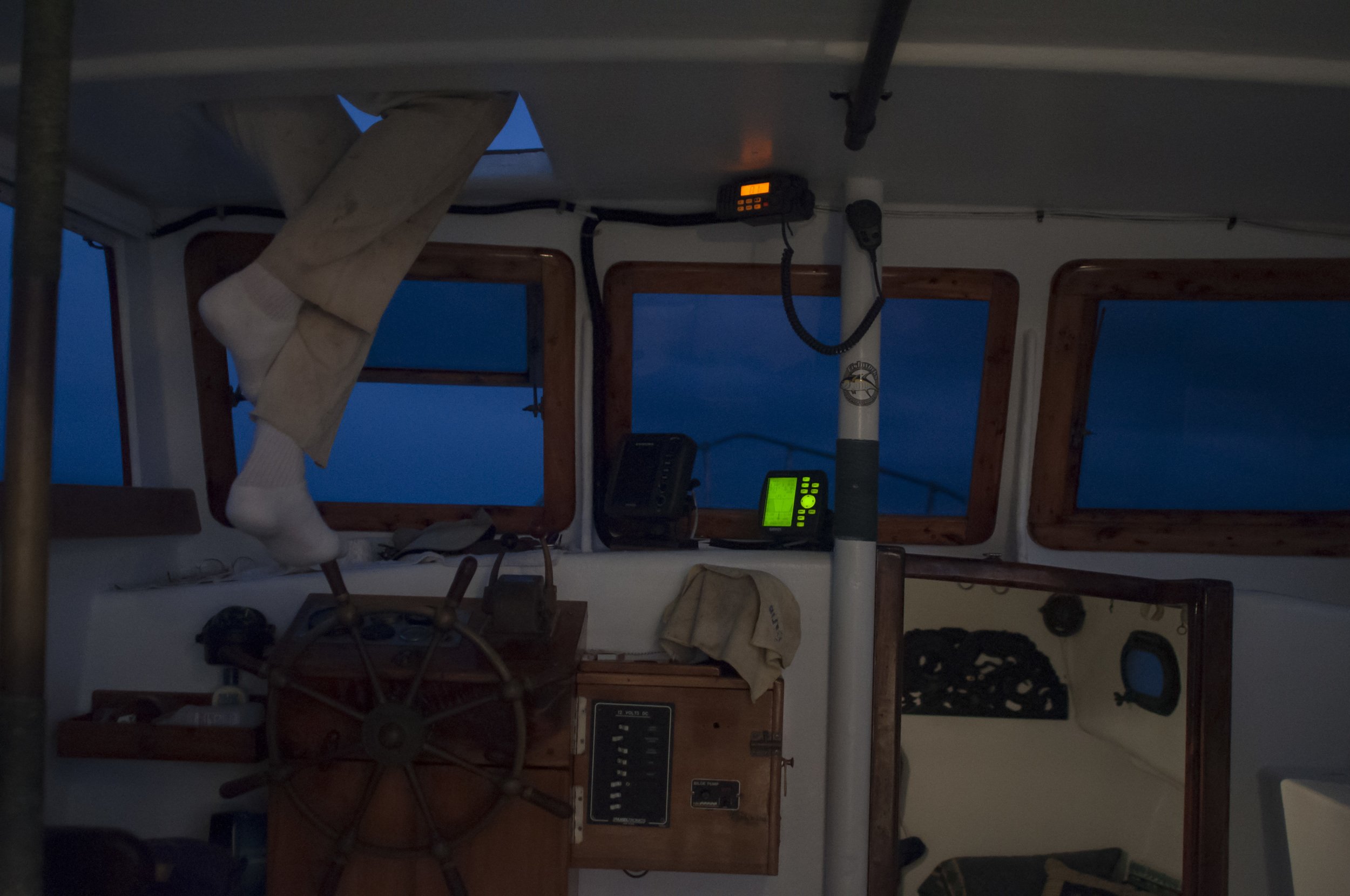 The second photo essay titled Like Father, Like Son is comprised of photographs I took of my husband, James West, and father-in-law, Blake West. These two men have worked together on and off as deep-sea fishermen for several decades in Bermuda. Their ability to work together both on the water and on land makes them a unique and well-respected father/son fishing duo. While making a living off of the ocean, they maintain a conservative approach towards fishing. In attempts to understand the minds of their fish, Blake and James move as the fish do. Father and Son are up well before the morning light to assess the weather and seek out blue water. My photographs offer a “behind the scenes” look at Blake’s and James’ day-to-day life.